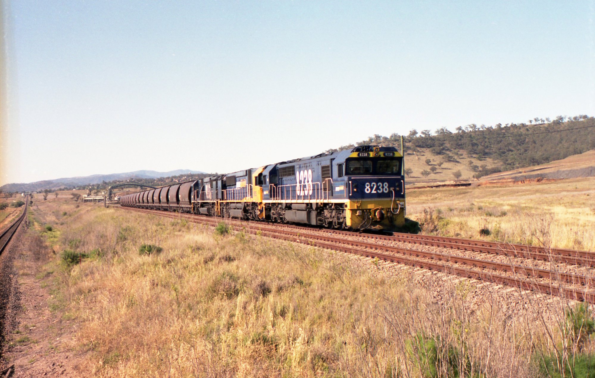 8238 and two 90 class engines on unit 14 during loading at Dartbrook, NSW, December 2006
