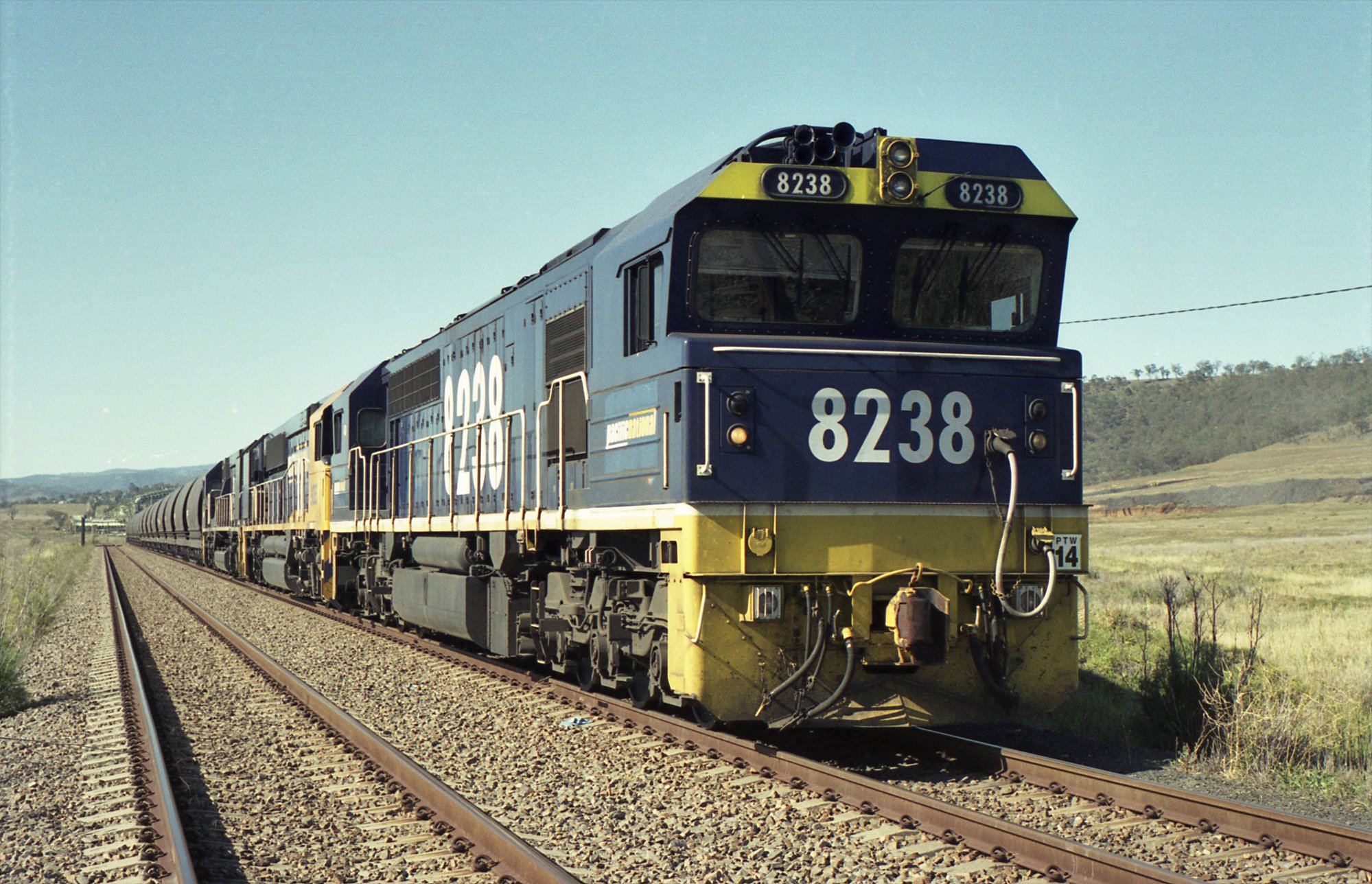 8238 and two 90 class locomotives on unit 14 at Dartbrook, NSW, December 2006