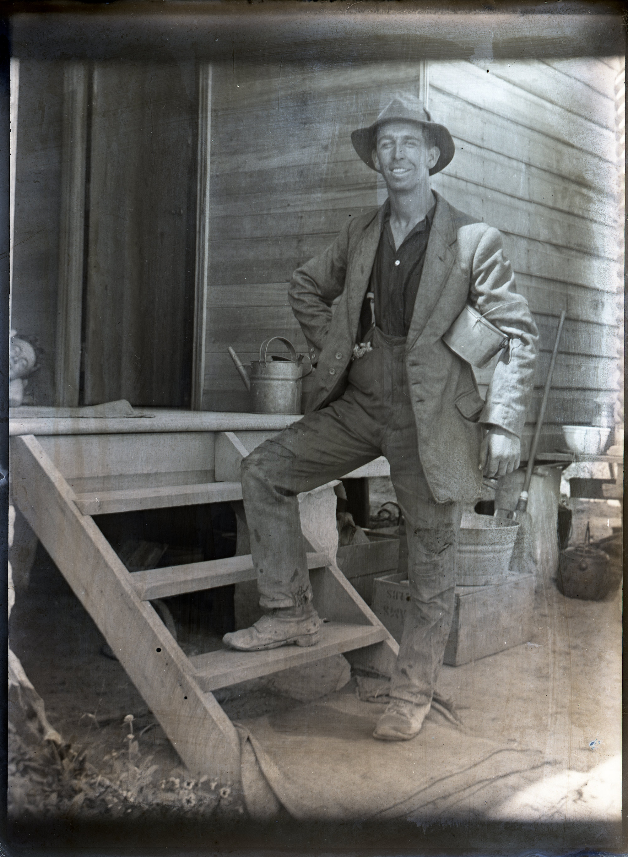 Workman on steps of a house, [n.d.] ([n.d.]), [ACC044]. Living Histories, accessed 14/02/2026, https://livinghistories.newcastle.edu.au/nodes/view/99414