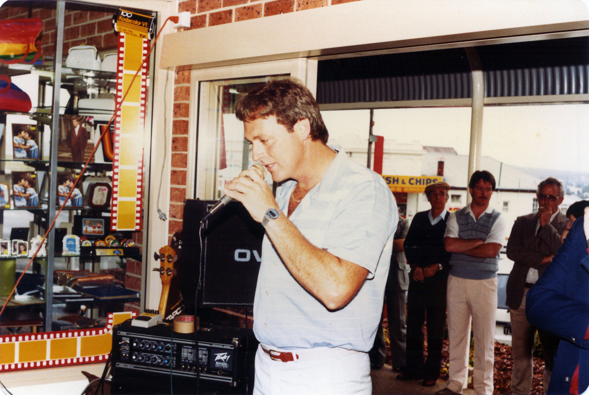 Sternbeck, Percival William, 1921-2004, Performer at the opening of Flemings Store, Kurri Kurri, April 1985 (Between 1st April 1985 and 30th April 1985), [Sternbeck002695-1985-008]. Living Histories, accessed 16/04/2026, https://livinghistories.newcastle.edu.au/nodes/view/99975